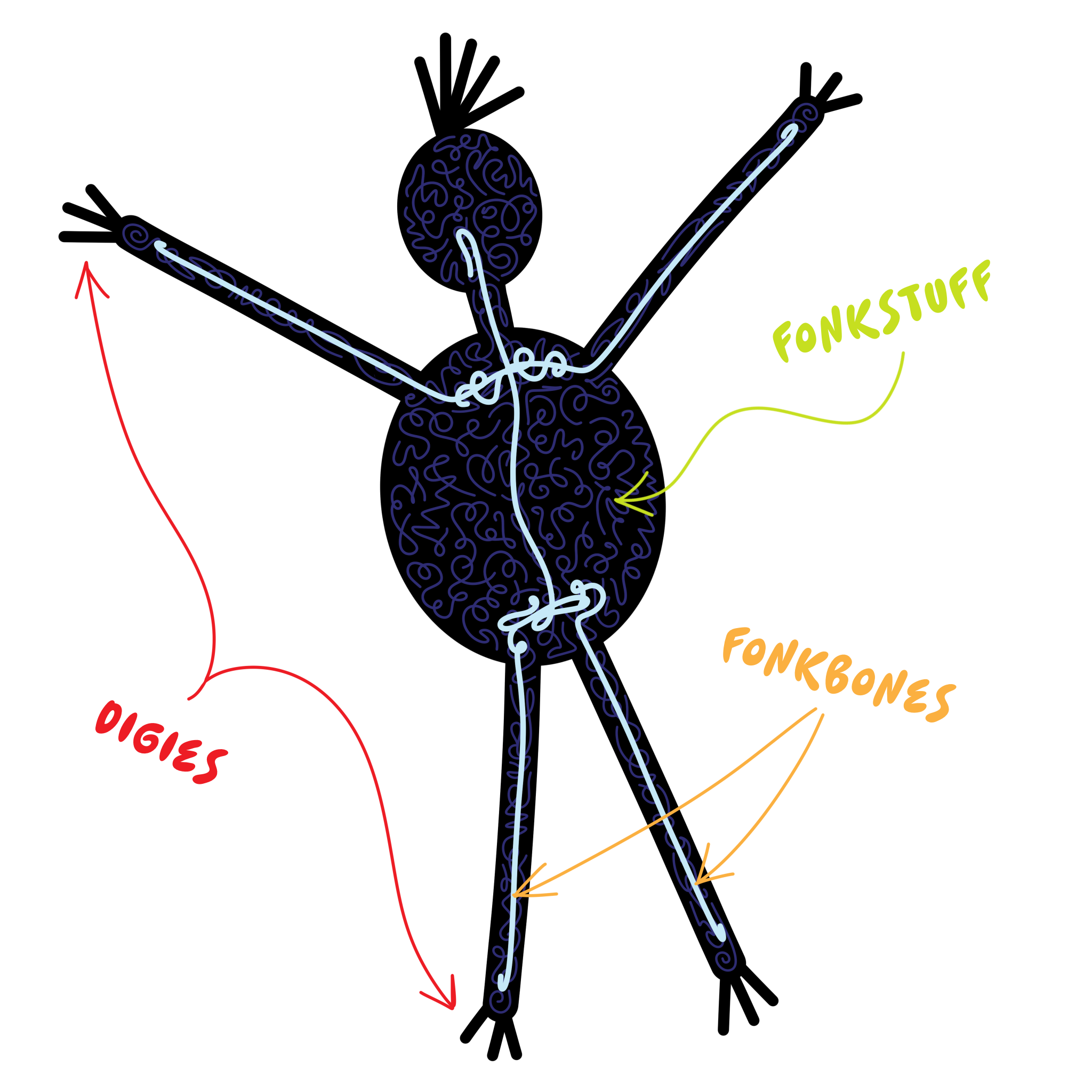 Fonkbones are what make a fonk so gosh darn posable. Bendy bones aren’t like our bones, are they? Not at all. Fonkbones are meant to be bent!