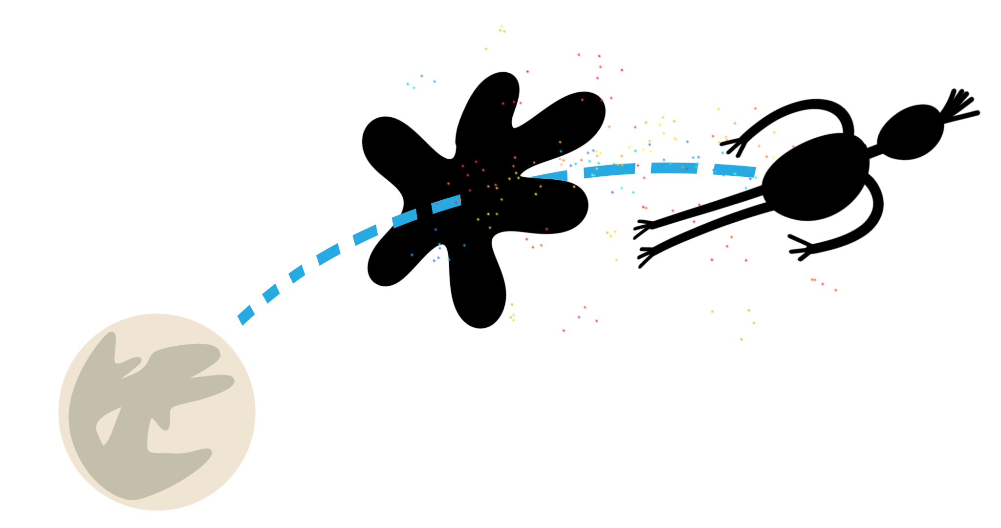 Could be a book, a movie, a famous person, a song, or whatever. You’ll just have to figure it out. But you’ll have help. You’ll have a fonk of course, The Moon comes around with a hint, and anybody else and their fonk can come along, too.